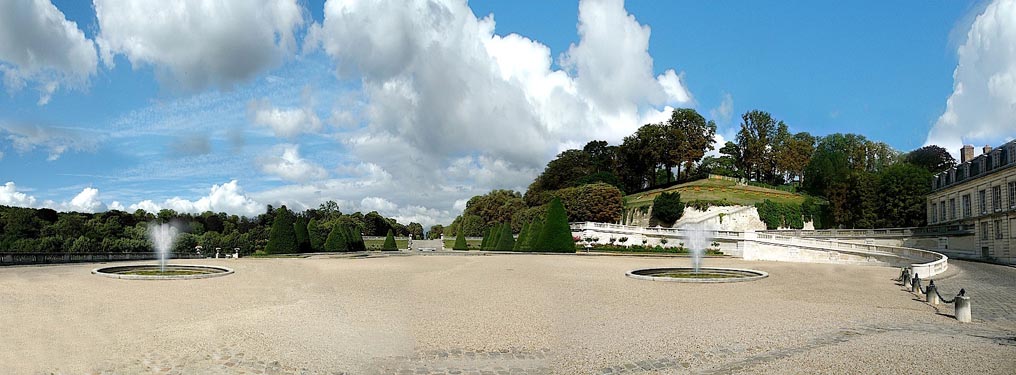 erhaltene Schlosspark mit seinen Parterres, Bosketten, Fontainen und Kaskaden. Ein Meisterwerk des königlichen Landschaftsgärtners André Le Nôtre. Der im 17. Jahrhundert neben vielen anderen auch die Gärten von Versailles, der Tuilerien und von Vaux-le-Vicomte schuf.