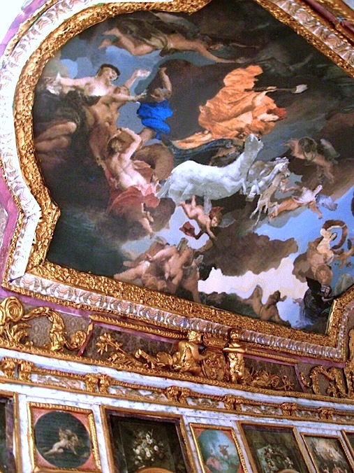 Detail des Deckengemäldes: Apollon und die Tugend.